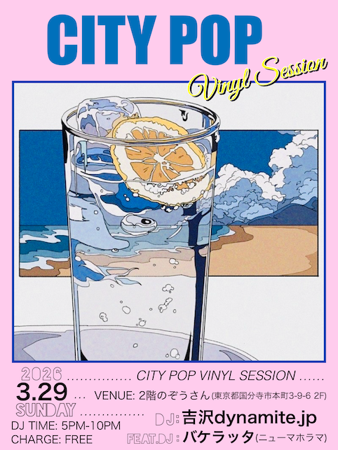 ※去年6月開催振り!シティポップ と言われる以前のニューミュージックやブギーファンクの定番、穴盤、レア盤、現行も含めた選曲(サンプラー不使用)。今回は長年の付き合いであるラッパー兼DJであり和モノ・ディグ歴も長いバケラッタにサポートして貰います。